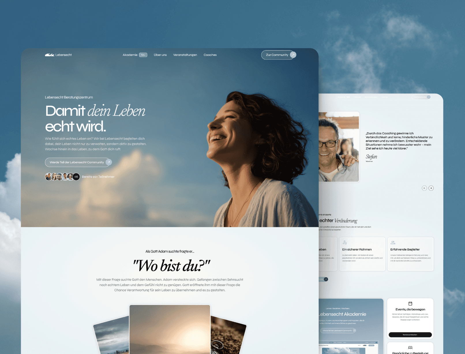 Lebensecht ist eine Online-Akademie an der Schnittstelle von Psychologie und geistlichem Leben. Wir entwickelten die strategische Positionierung, den gesamten Außenauftritt sowie die digitale Lernplattform – und formten aus einzelnen Angeboten ein klares, markenfähiges Online-Produkt. Die besondere Herausforderung lag darin, Psychologie und Glaube visuell und konzeptionell zu vereinen - umgesetzt in einer leichten, emotionalen Designsprache mit kunsthistorischer Referenz und starkem Markencharakter.